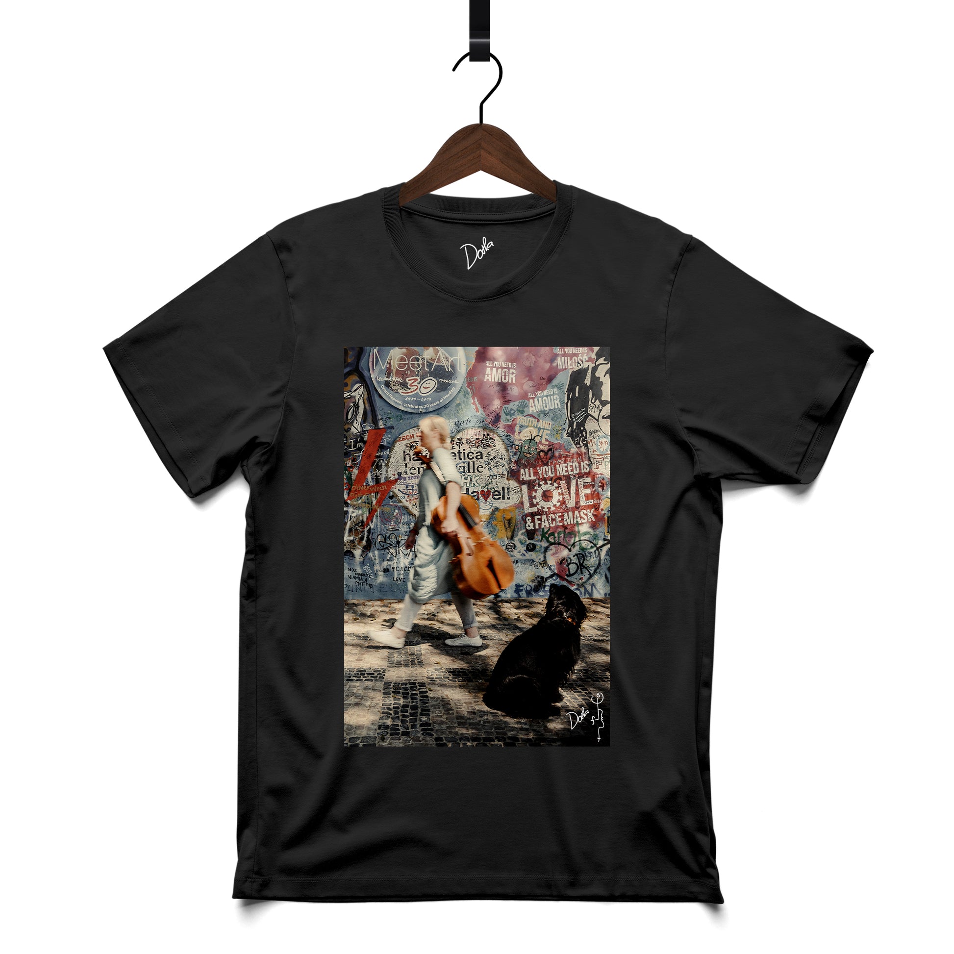 Lenonova zeď jako pozadí, kde hudba, barvy a emoce tvoří harmonii. Design, který přitahuje pozornost.